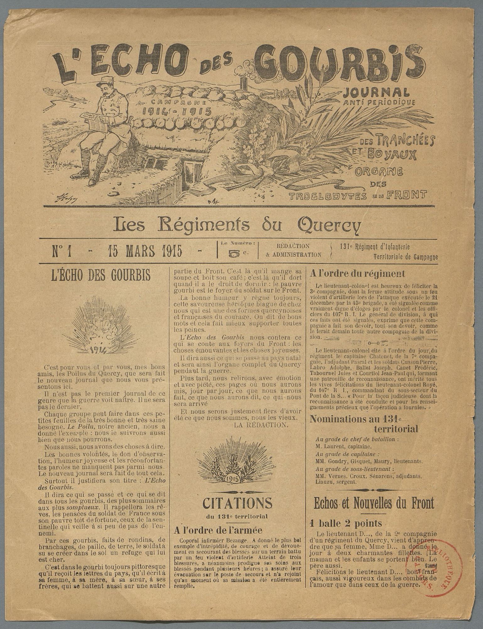 - La collection du journal de tranchée, l’Écho des Gourbis, conservée à la Bibliothèque patrimoniale du Grand Cahors est complète.