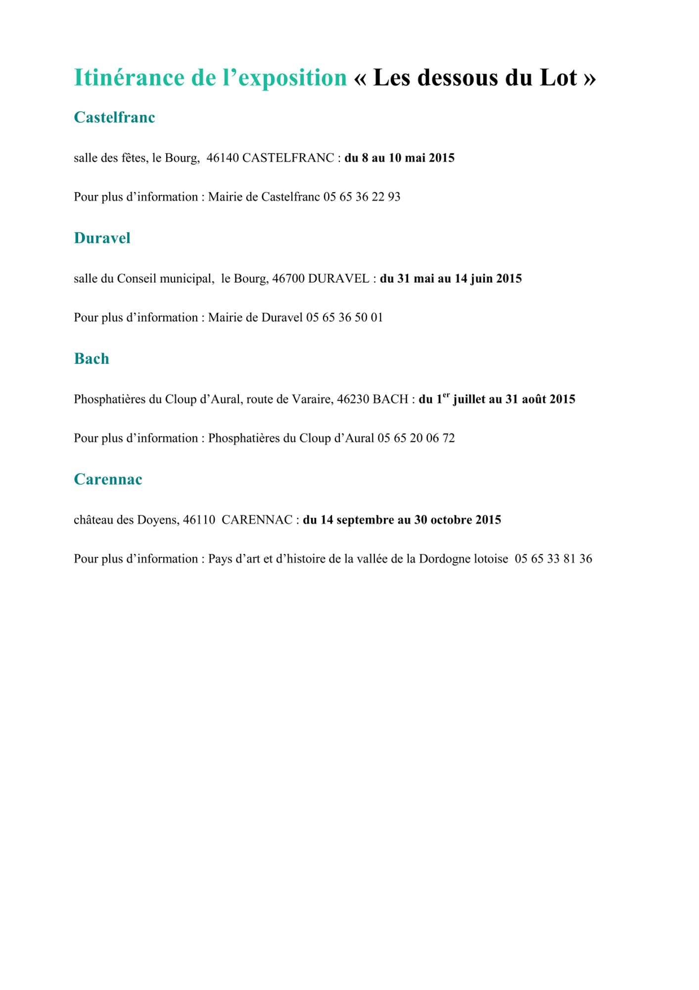 Comme chaque année les étudiants du master patrimoine de Cahors proposent au terme de leurs deux années de formation, une réalisation valorisant le patrimoine. Le thème retenu, les richesses du sous-sol lotois, est cette fois illustré sous la forme d’une exposition itinérante joliment intitulée « Les dessous du Lot ».