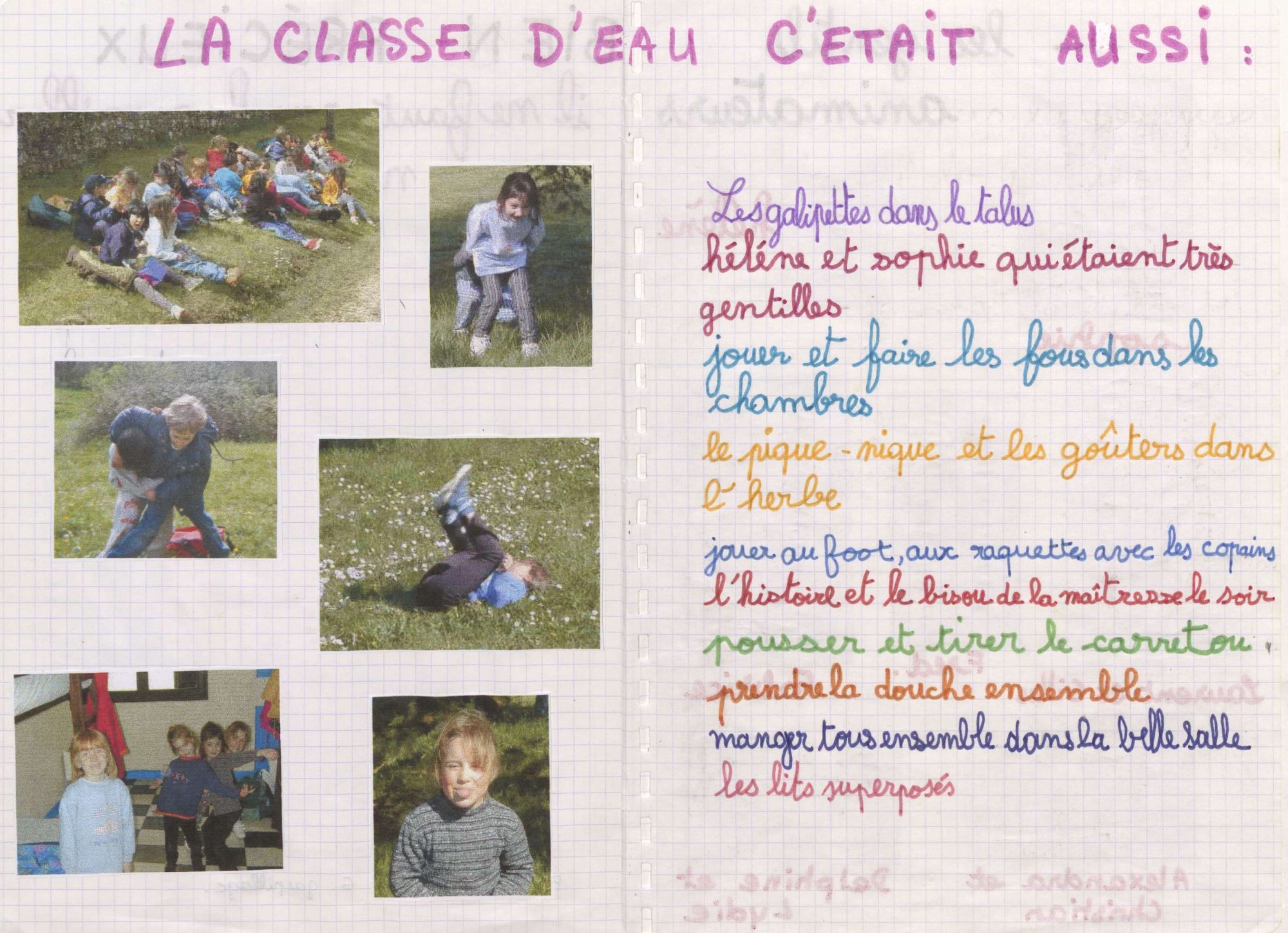 Les archives de cette association (95 J), et en particulier les productions scolaires des élèves en séjour (95 J 53), nous transmettent le témoignage de ces enfants qui, au début des années 2000, s’amusaient tout en découvrant l’environnement, le vivre ensemble, bref la vie…