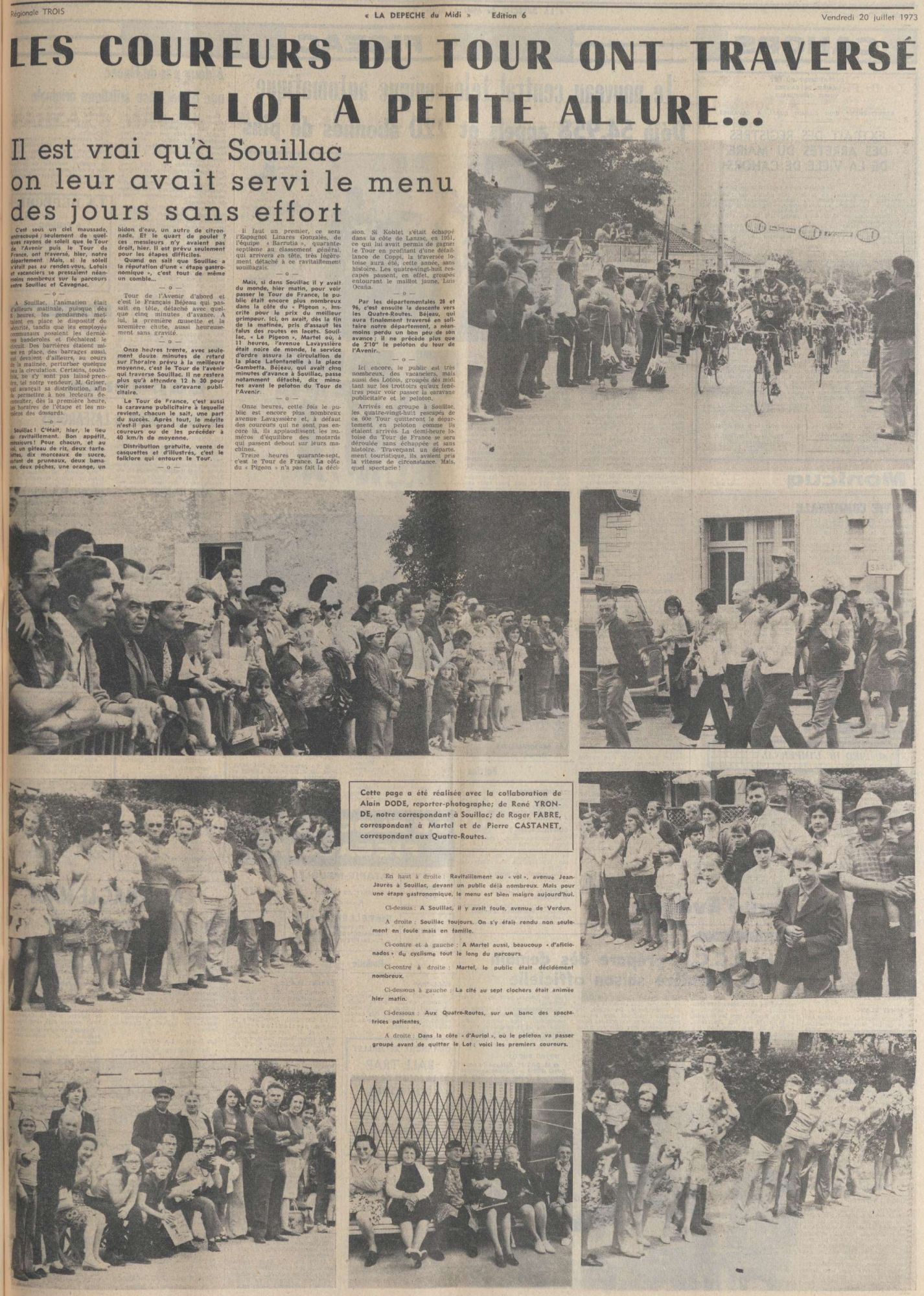 C’est Figeac qui aura les honneurs du premier départ d’une étape depuis le Lot, pour les 75 ans du Tour, ce jeudi 13 juillet 1978 : au programme, une cinquantaine de km en passant par Cardaillac, Sainte-Colombe (Rouqueyroux), Latronquière et Sousceyrac, avant la traversée du Cantal et du Puy-de-Dôme pour rejoindre la station de Super Besse.