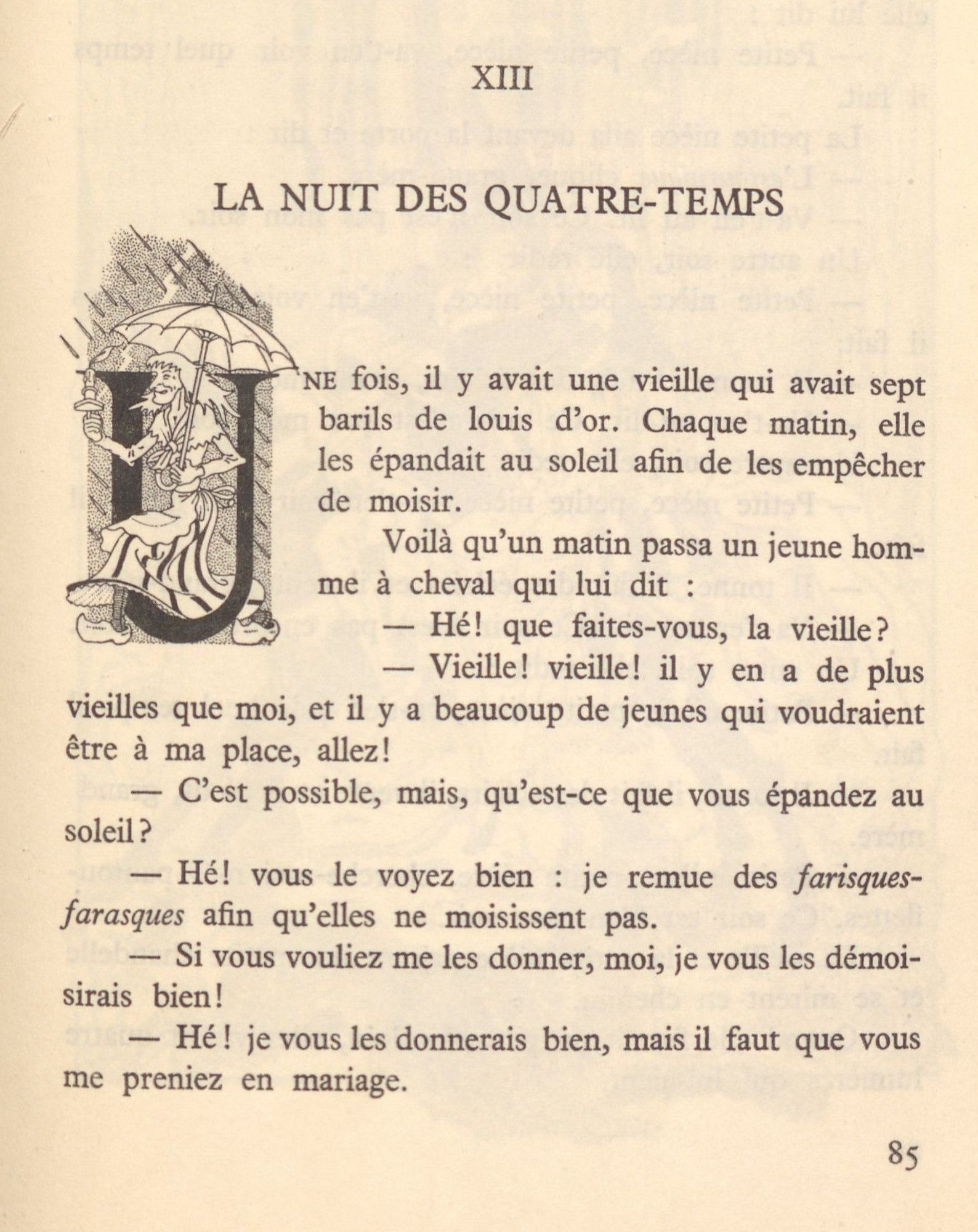 Une fois, il y avait une vieille qui avait sept barils de louis d’or. Chaque matin, elle les répandait au soleil afin de les empêcher de moisir.