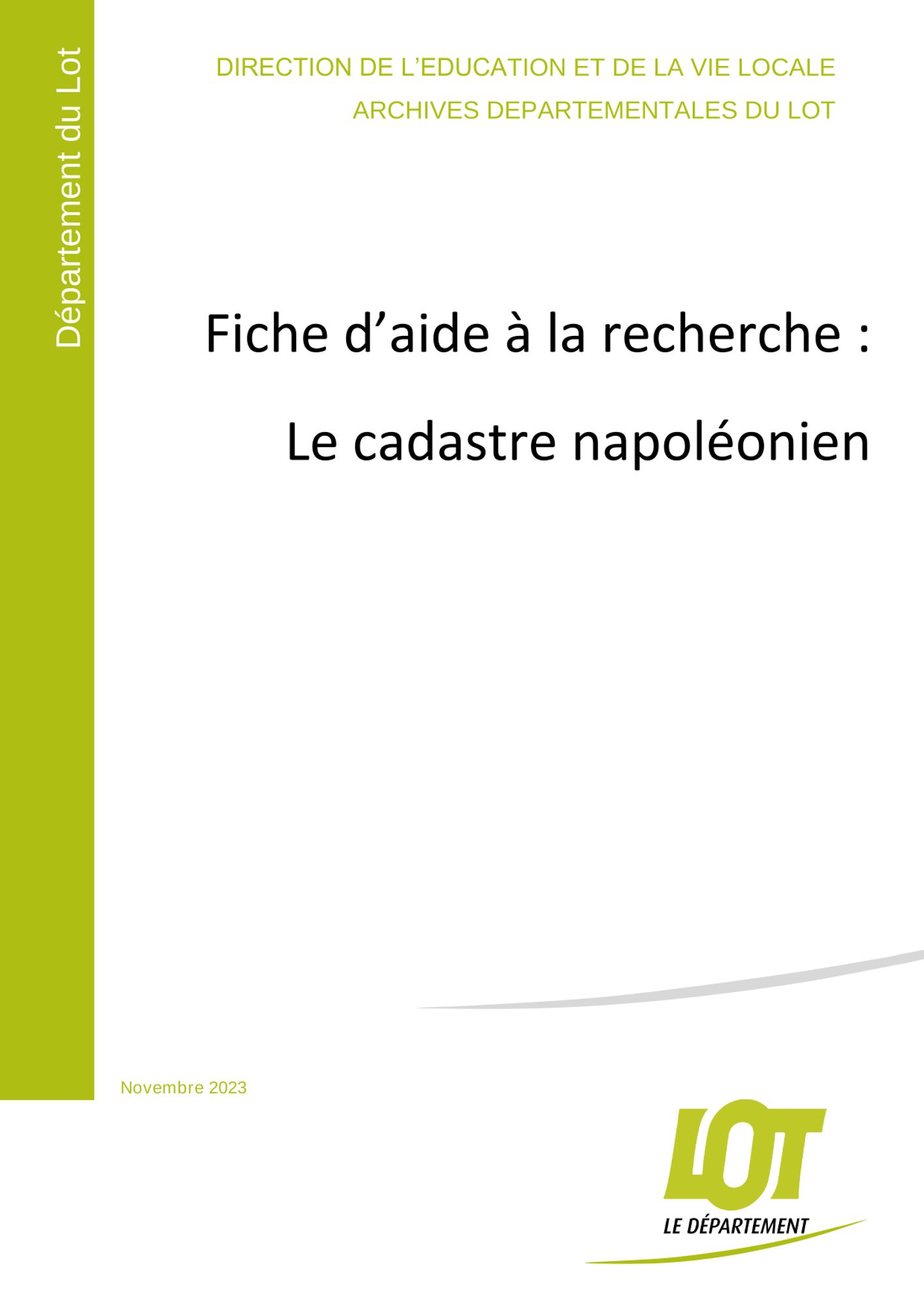 Retrouvez ici les fiches pratiques d'aide à la recherche, également disponibles au format papier aux Archives départementales du Lot :